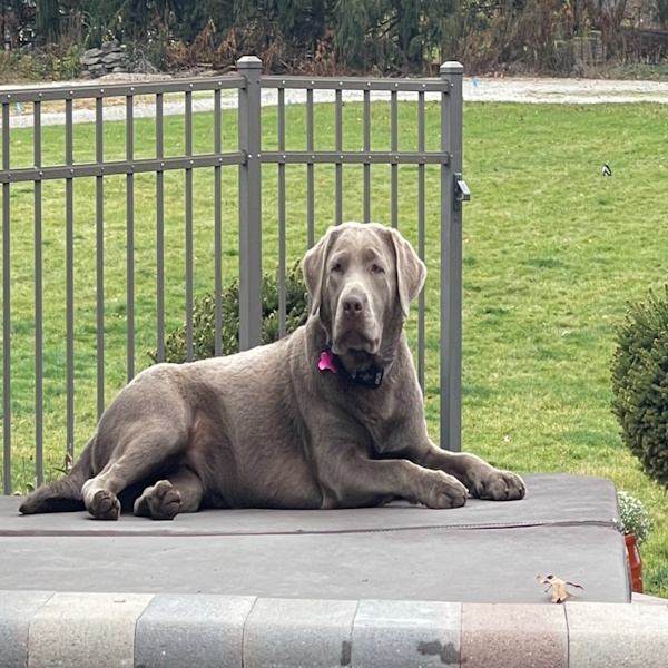 Shelby is a beautiful silver English Labrador weighing 70 pounds. She has a thicker, well-balanced build for a female and a calm, gentle temperament that perfectly represents the English Lab personality. Shelby’s sweet nature and steady disposition make her a joy to be around and a wonderful example of the breed.